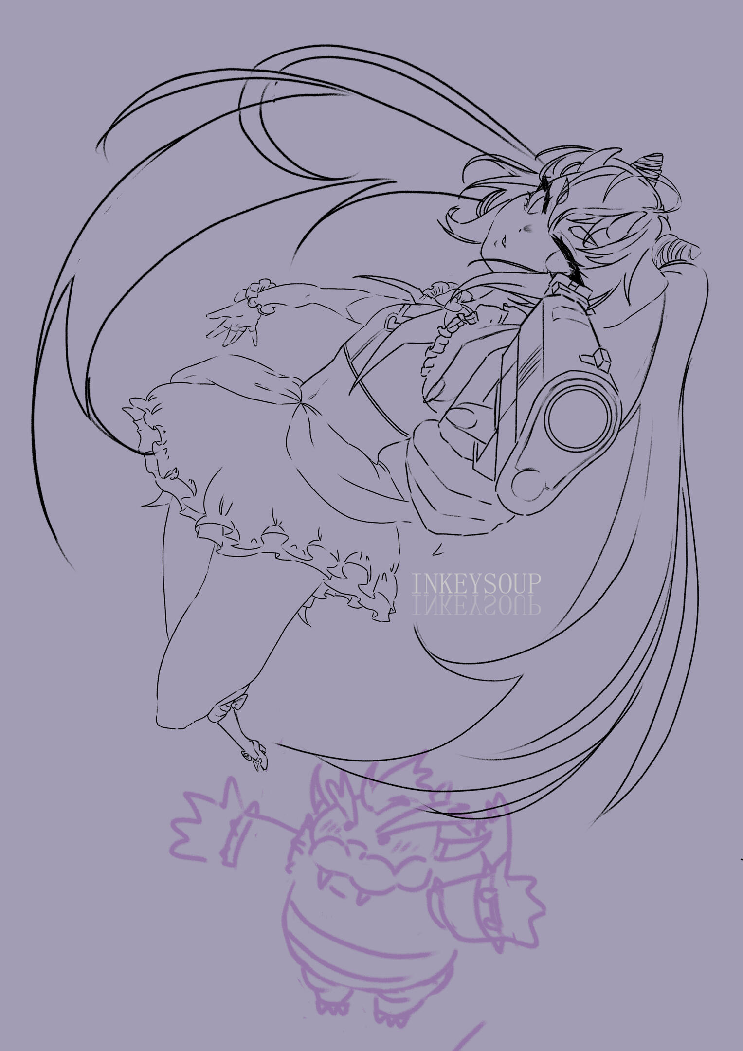 You will receive several update pictures while working on the piece. Remember you can ask for major changes during the sketch phase, ask for colour changes after flat colours and after that you can only ask for smaller changes.
